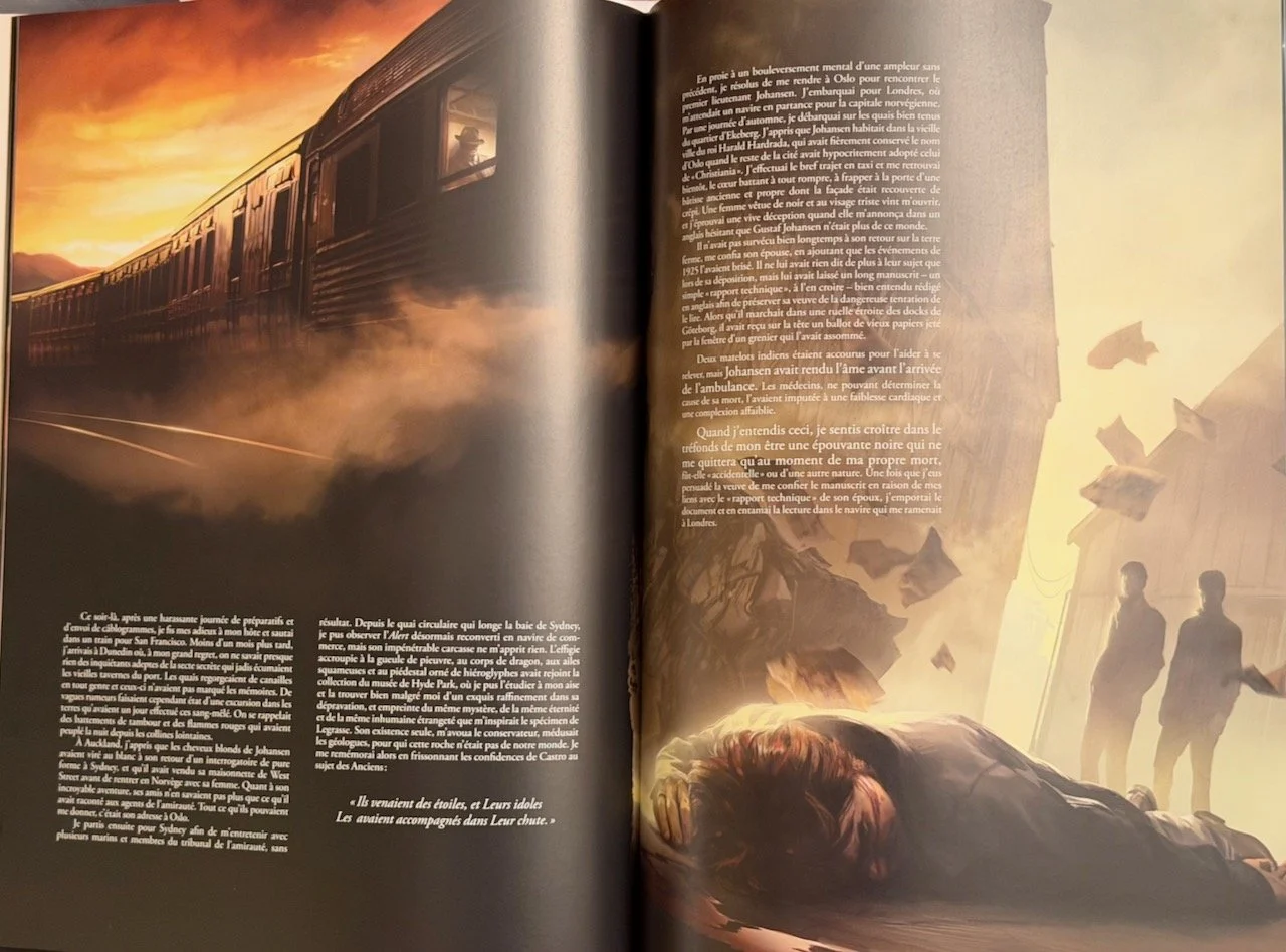 La taille hors norme des livres sert bien le projet, particulièrement quand il met en scène des bâtiments cyclopéens ou des créatures titanesques. Les humains et leurs artefacts semblent minuscules, écrasés par leur taille, mais on arrive toujours à en distinguer les détails, ce qui renforce l’impression de démesure vertigineuse.
